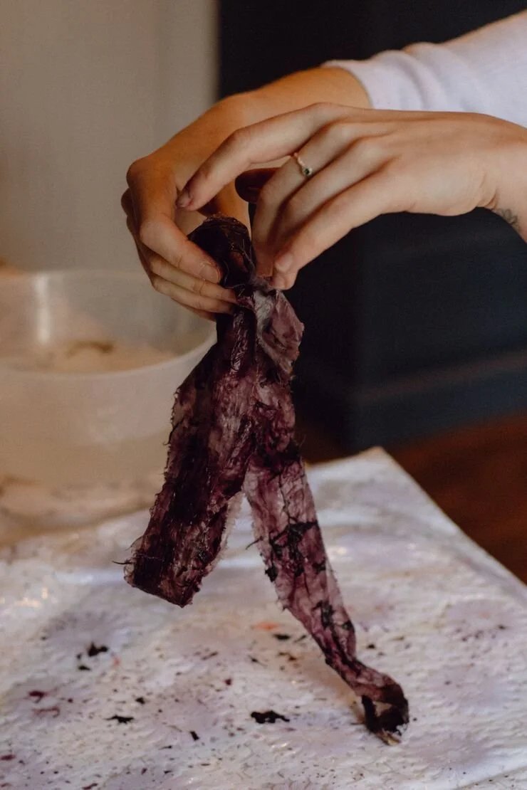 Aymee is a textile artist from Aberdeen and a Gray's School of Art alumna. She enjoys working with botanicals to apply print and pattern on silk and other natural materials. Her art practice embodies the idea of ‘care’, in both artwork and products created.