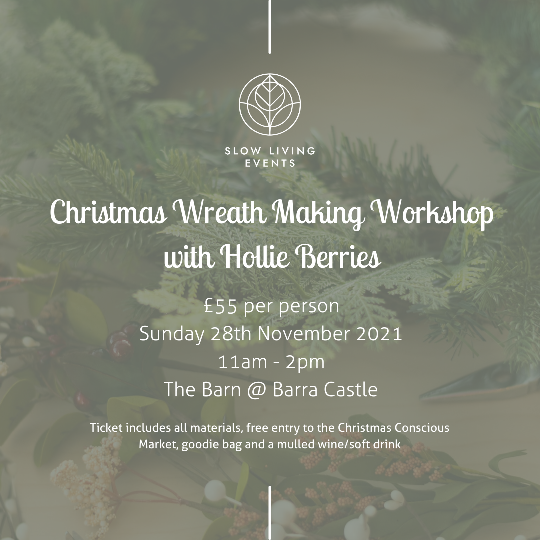 Running alongside the Christmas Conscious Market, the lovely Hollie will be hosting a three-hour-long workshop where you will make your very own Christmas wreath. A perfect gift for you or a loved one!