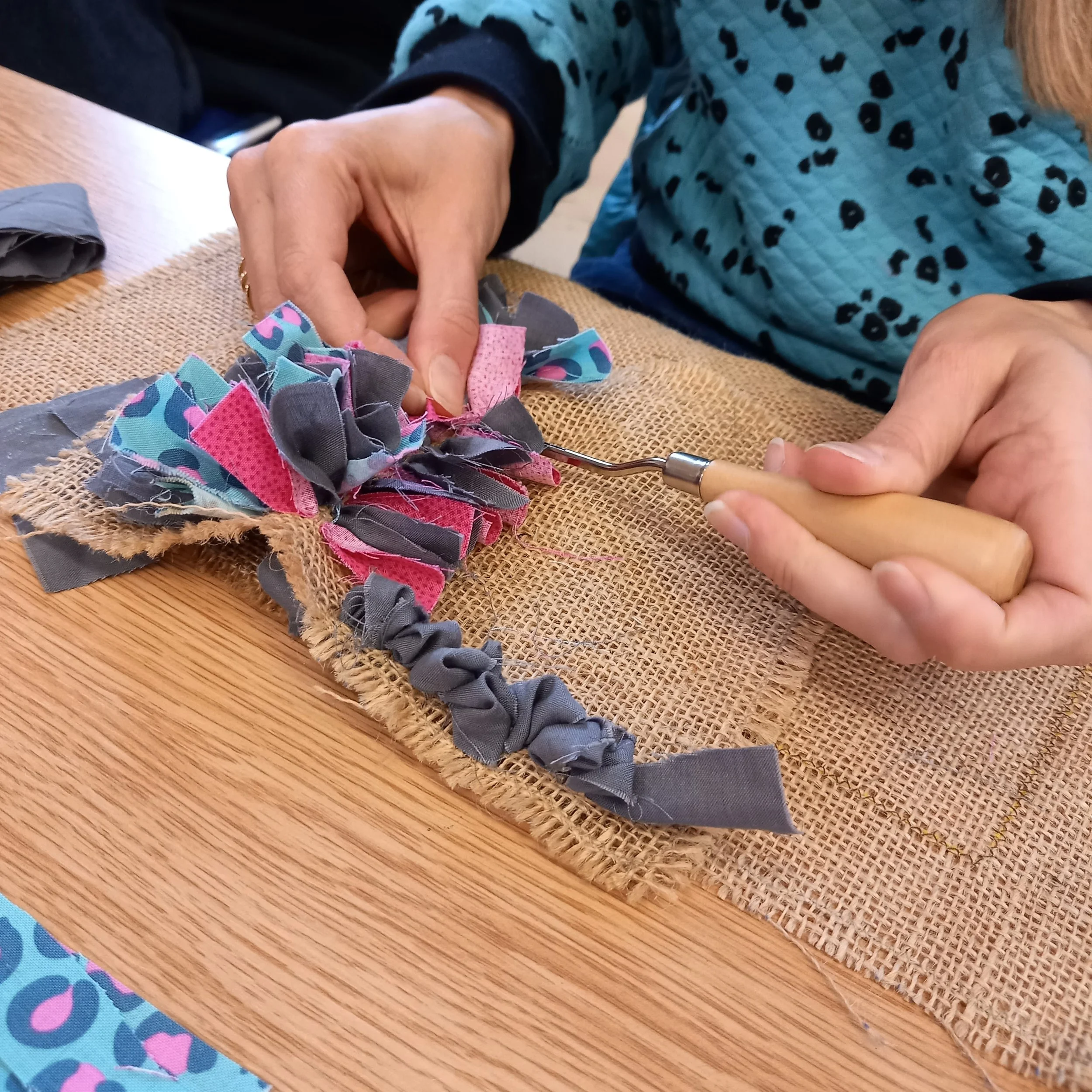 This is a lovely craft to learn and uses up all those old worn out t-shirts, sheets, shirts etc that we tend to throw away. We will be cutting these up into strips and learning the techniques of hooking into a hessian base.