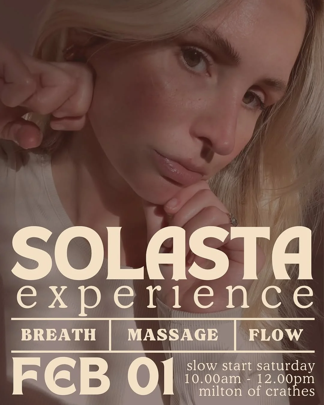 Learn about Solasta Skin and how to incorporate Jess’s beautiful range into your self-care rituals, and as a token of appreciation, you will receive a 10% discount on all Solasta Skin products purchased on the day.