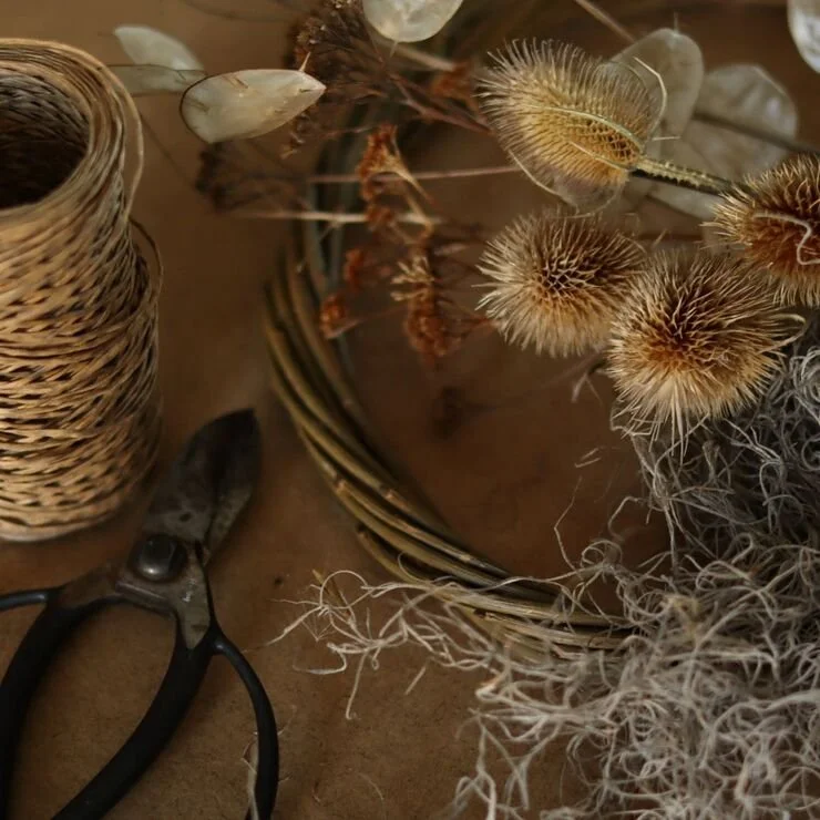 Using beautiful, dried materials, learn how to design and create a contemporary yet natural piece. Receive a step-by-step guide on design, techniques and sustainable methods. You will be provided with all the materials you need, including beautiful British-grown weaved willow bases and natural accessories, to create your unique piece. Add a seasonal statement to your home by creating your everlasting festive wreath.