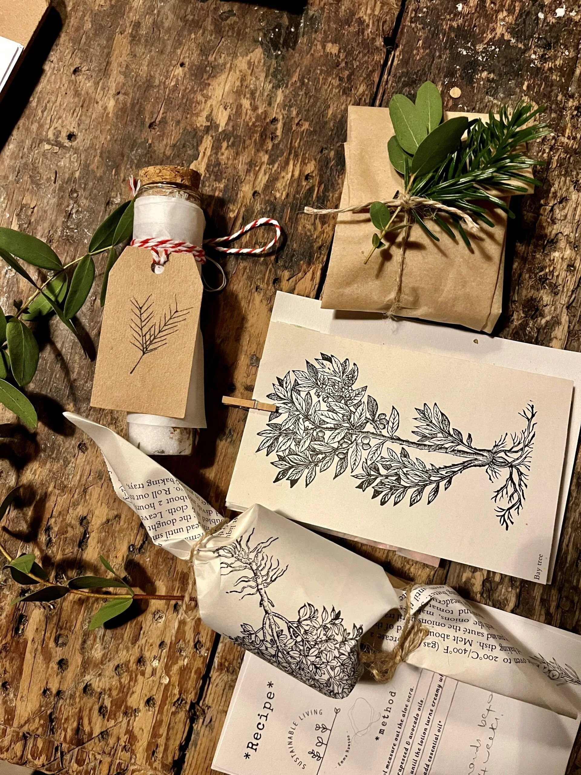 You’ll also learn how to sustainably gift wrap them for Christmas using vintage botanical prints, organic twine and fresh foliage.